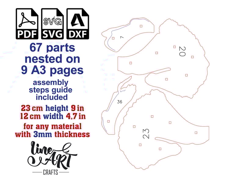 • Vector files for CNC, Scroll Saw, Laser Engraver, Desktop Cutter, Printer