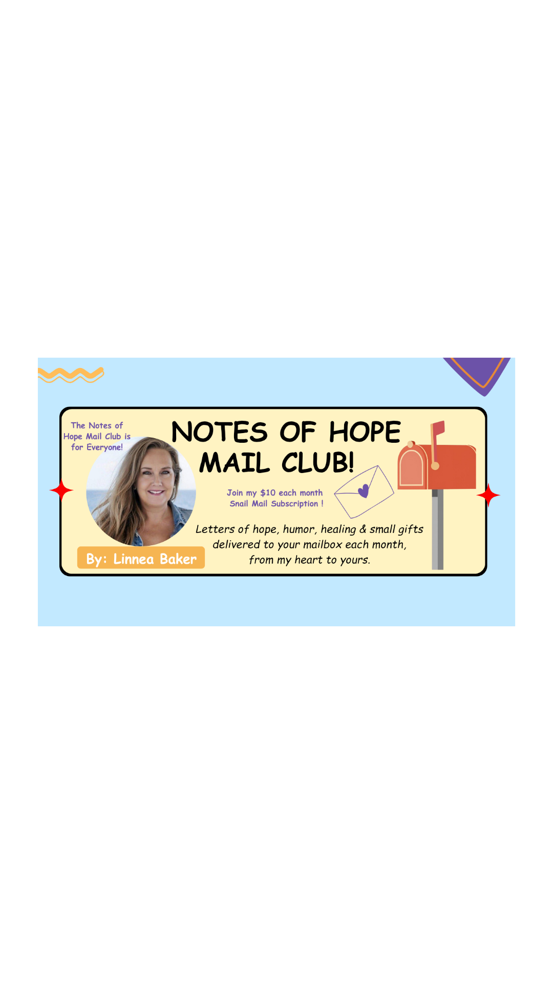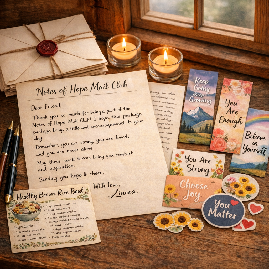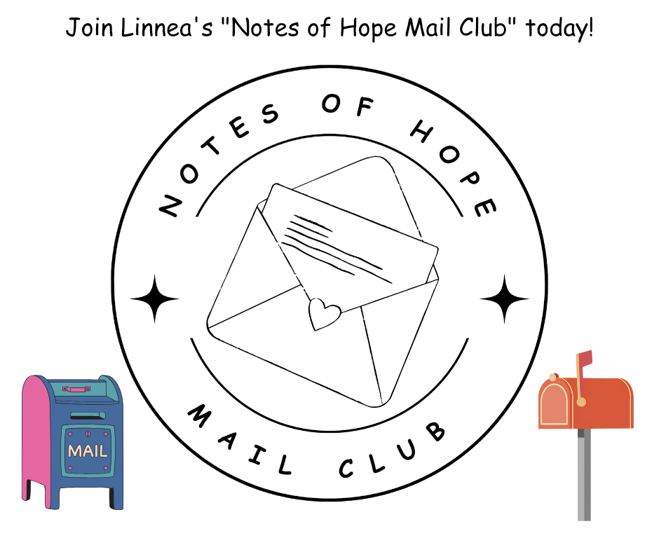 Linnea's Notes of Hope Mailing Club is for everyone and is like receiving a warm hug in the mail.