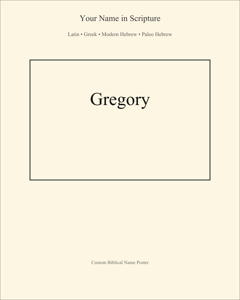 • A custom digital poster (PDF) with your first name translated into Latin, Greek, Modern Hebrew, and Paleo Hebrew