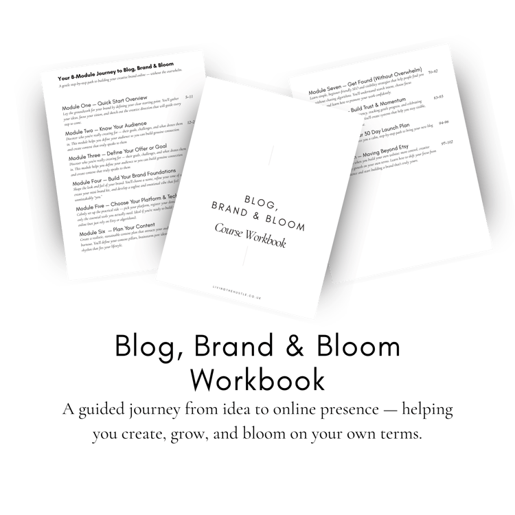 Through my workbook Blog, Brand & Bloom and other creative tools, I help you build your blog or website without the overwhelm — one simple, beautiful step at a time.