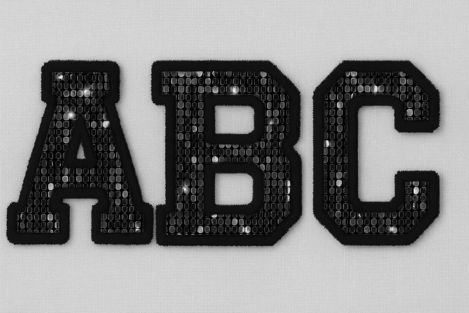 Black Sequin Alphabet PNG Bundle | 26 Varsity Letters | A-Z Digital Download