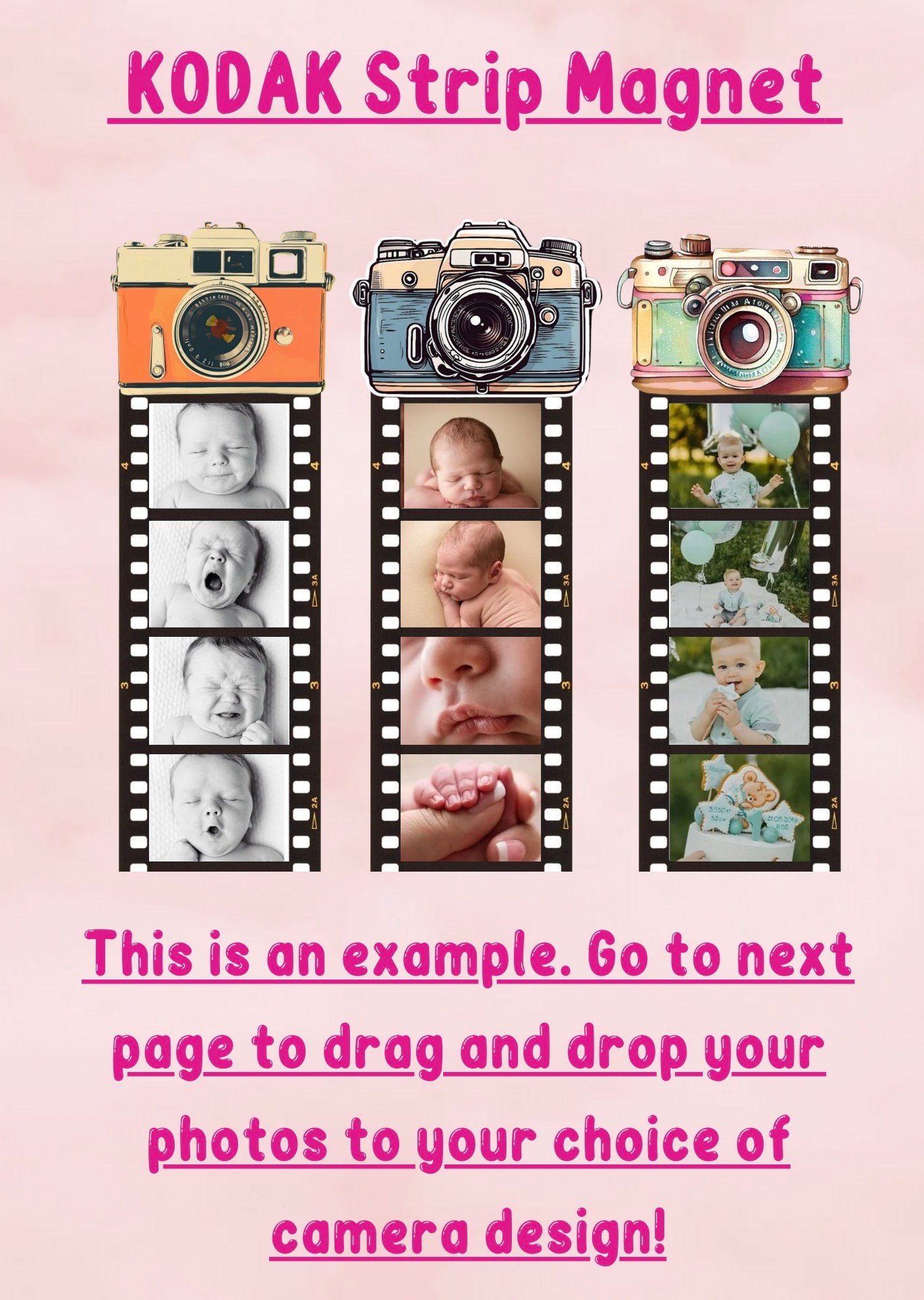 Kodak Strip Magnet Canva Template – Retro Photo Strip Design for Baby & Family Pictures