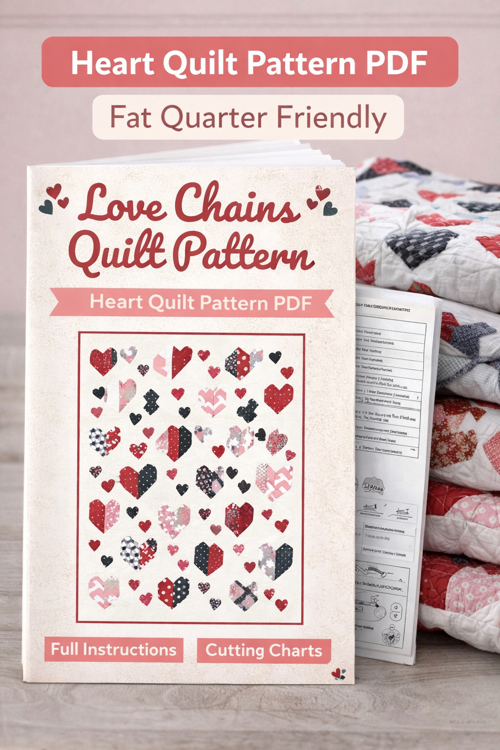 Love Chains Quilt Pattern PDF | Heart Quilt Pattern (Fat Quarter Friendly)