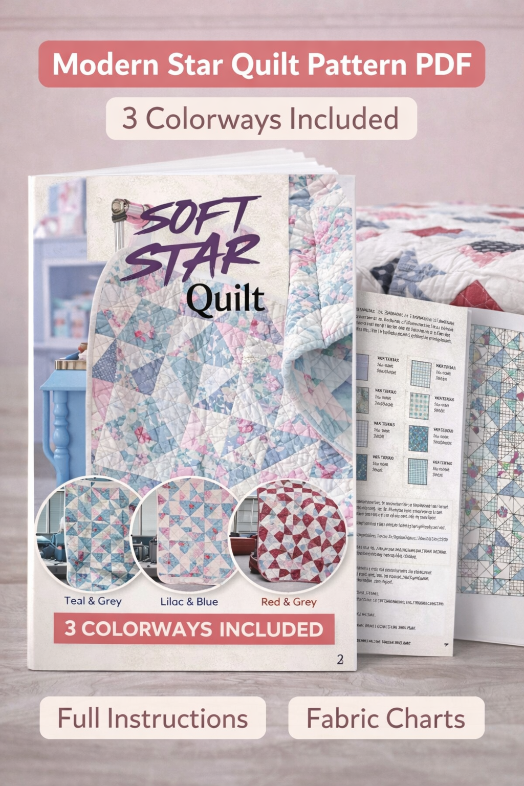 Soft Star Quilt Pattern PDF | Modern Star Quilt (3 Colorways Included)
