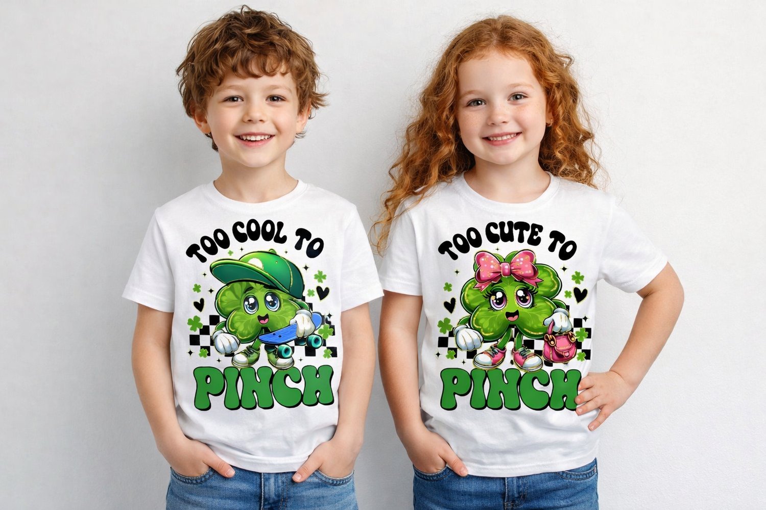 Too Cool to Pinch & Too Cute to Pinch – Kids St. Patrick’s Day PNG Bundle