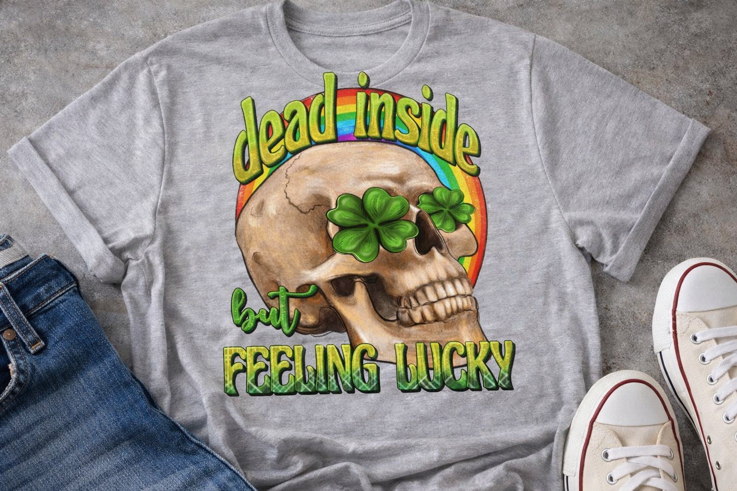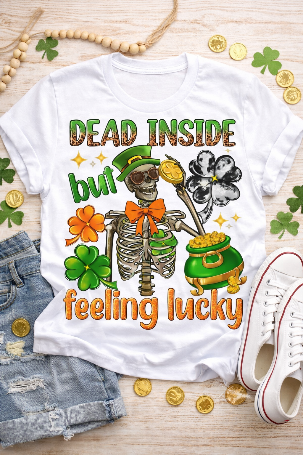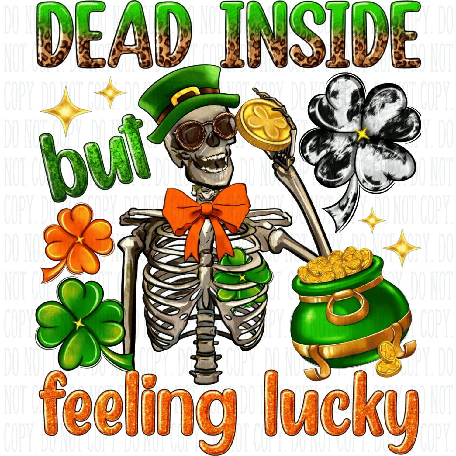 Dead Inside but Feeling Lucky PNG | Funny St. Patrick’s Day Skeleton Shirt Design | Irish Sublimation File