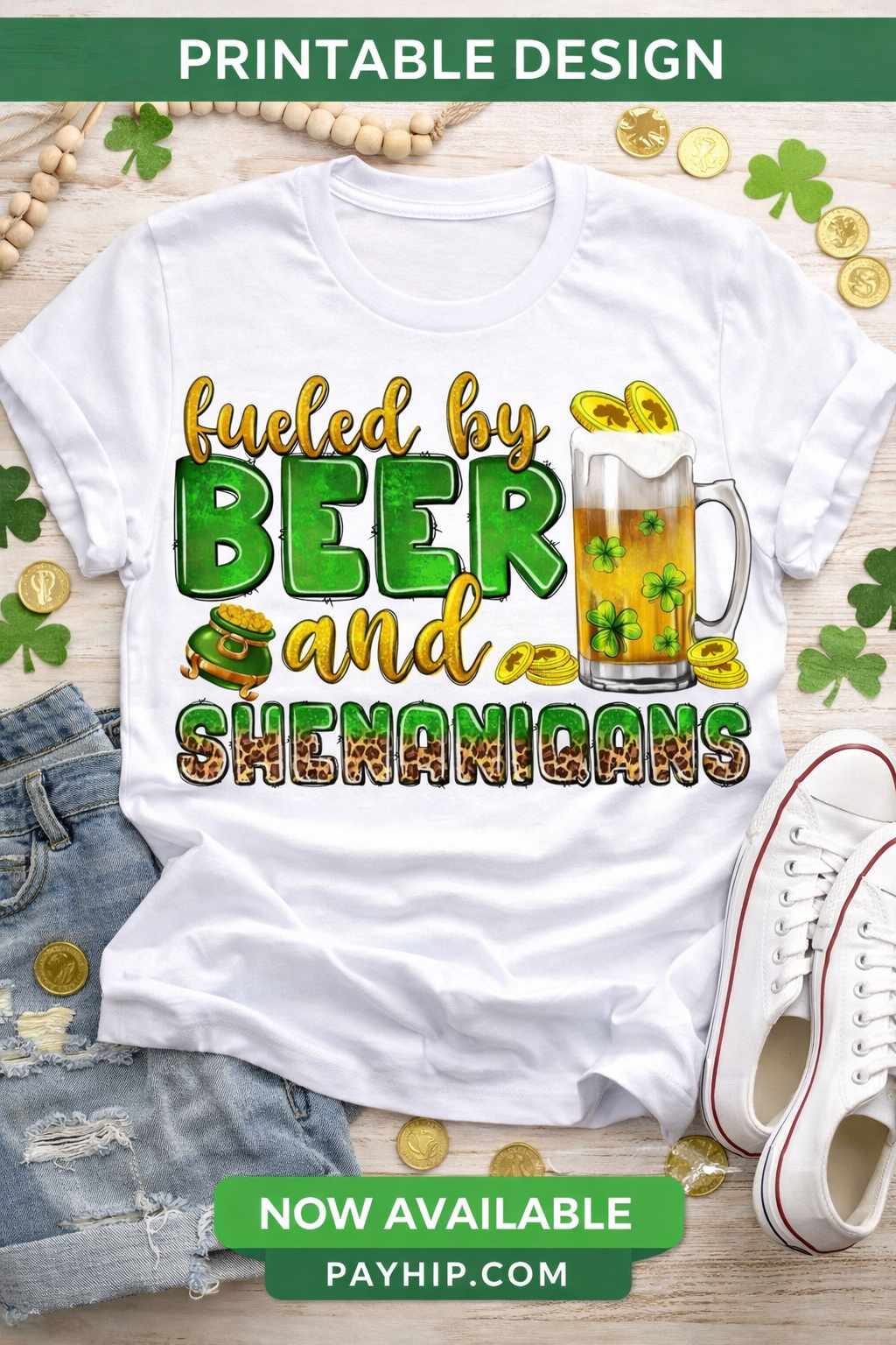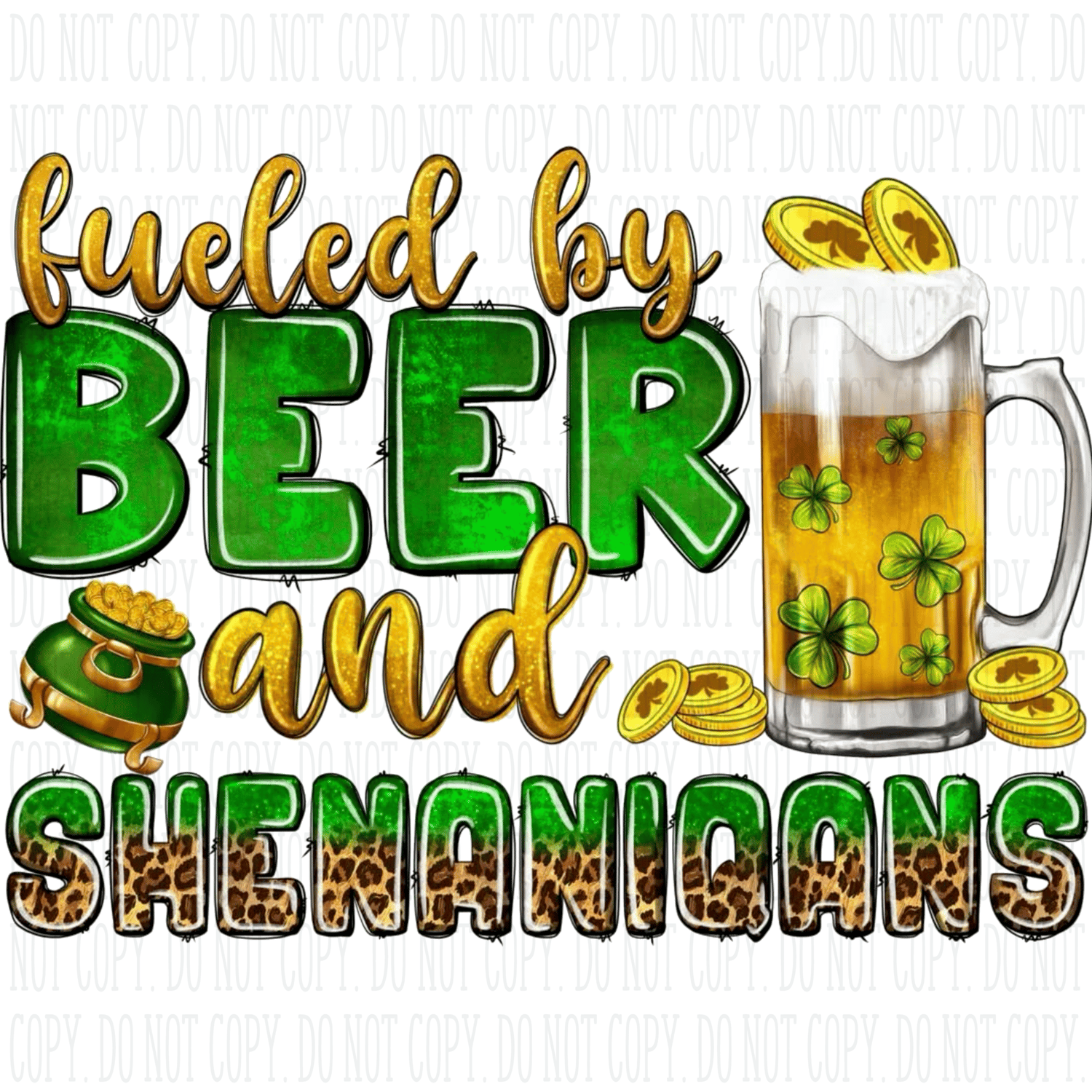 Fueled by Beer and Shenanigans PNG | St. Patrick’s Day Shirt Design | Funny Irish Sublimation & Cricut File