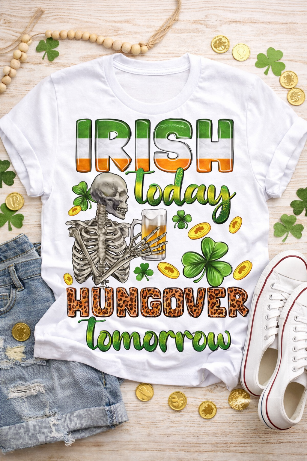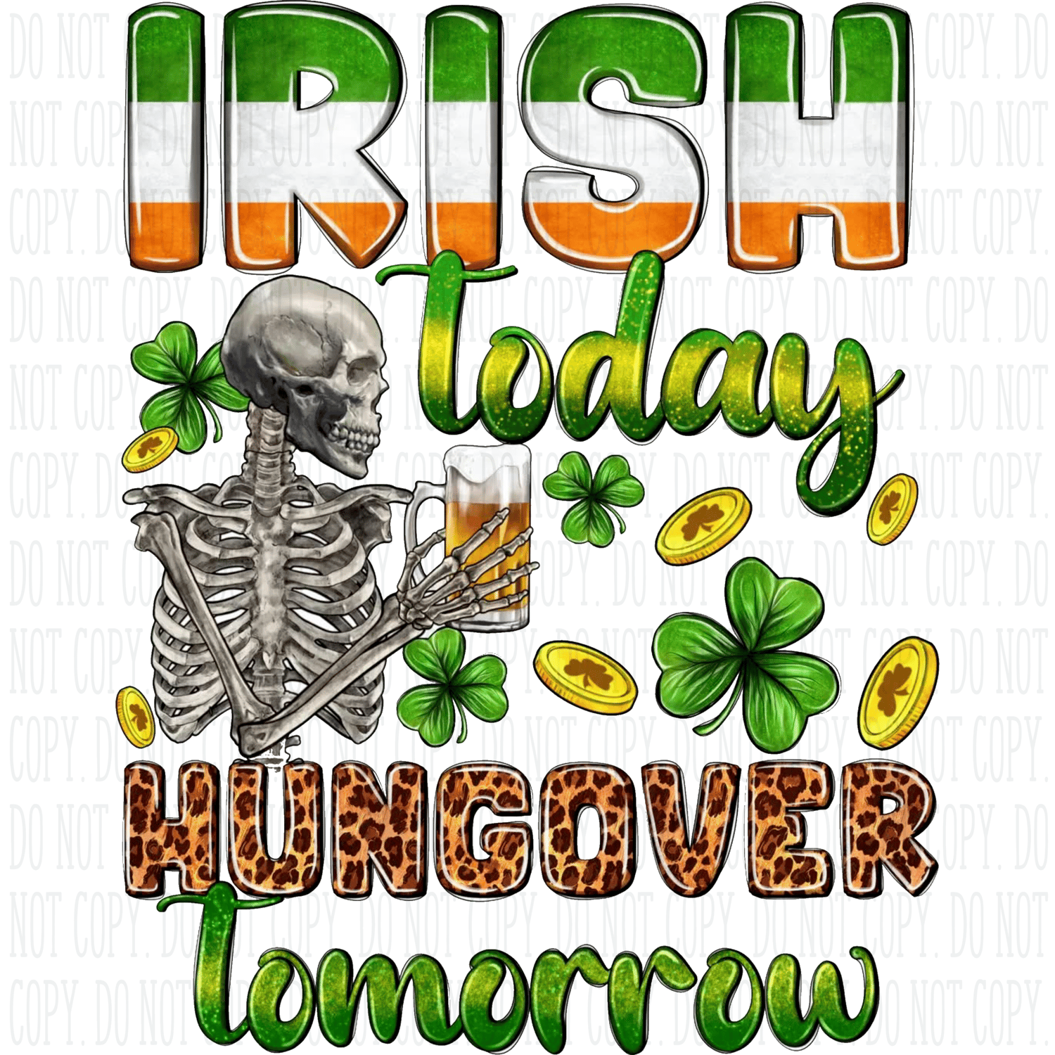 Irish Today Hungover Tomorrow PNG | Funny St. Patrick’s Day Shirt Design | Skeleton Beer Sublimation File