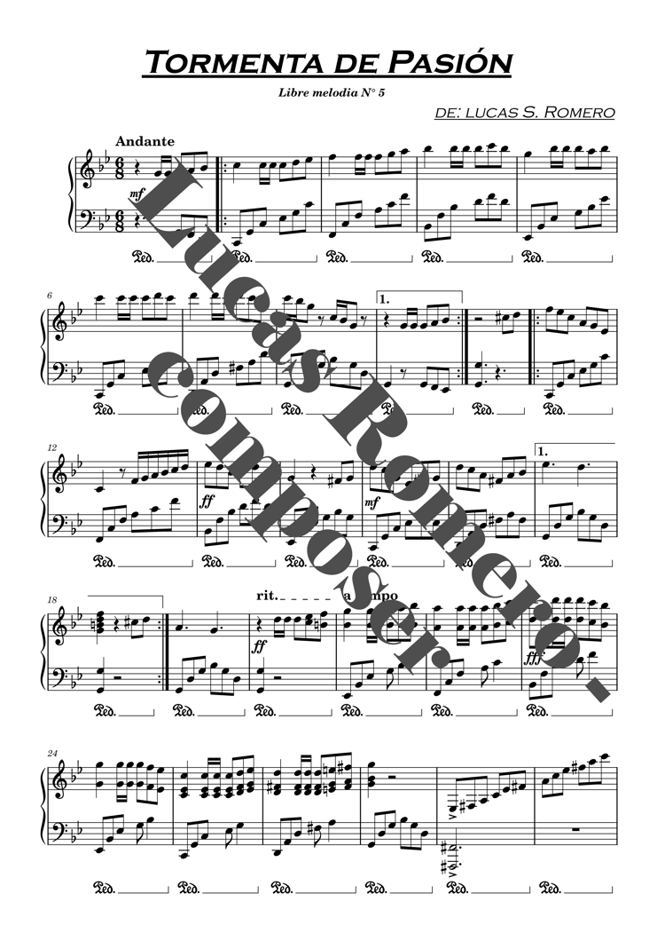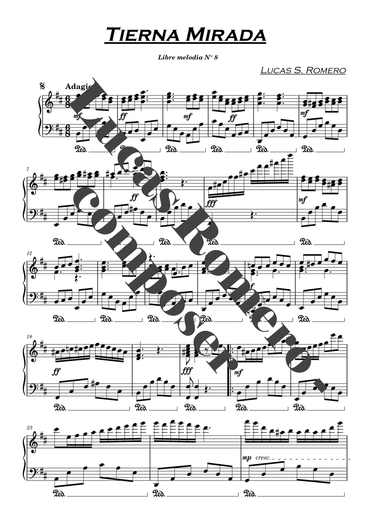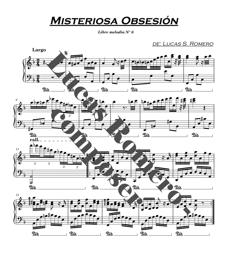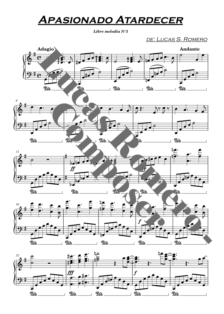"Soy Lucas Romero, pianista y compositor argentino. Compongo piezas originales para piano que transmiten emoción, sensibilidad y un estilo romántico moderno. Aquí encontrarás mis partituras para que puedas interpretarlas y disfrutarlas."