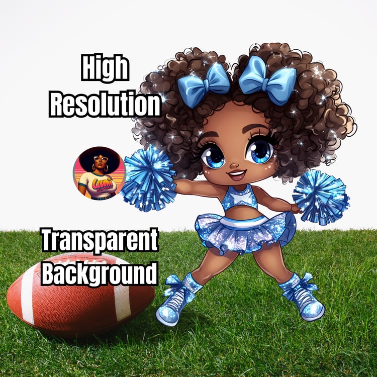 Blue Cheerleader PNG | Black Girl Clipart for Game Day Crafts