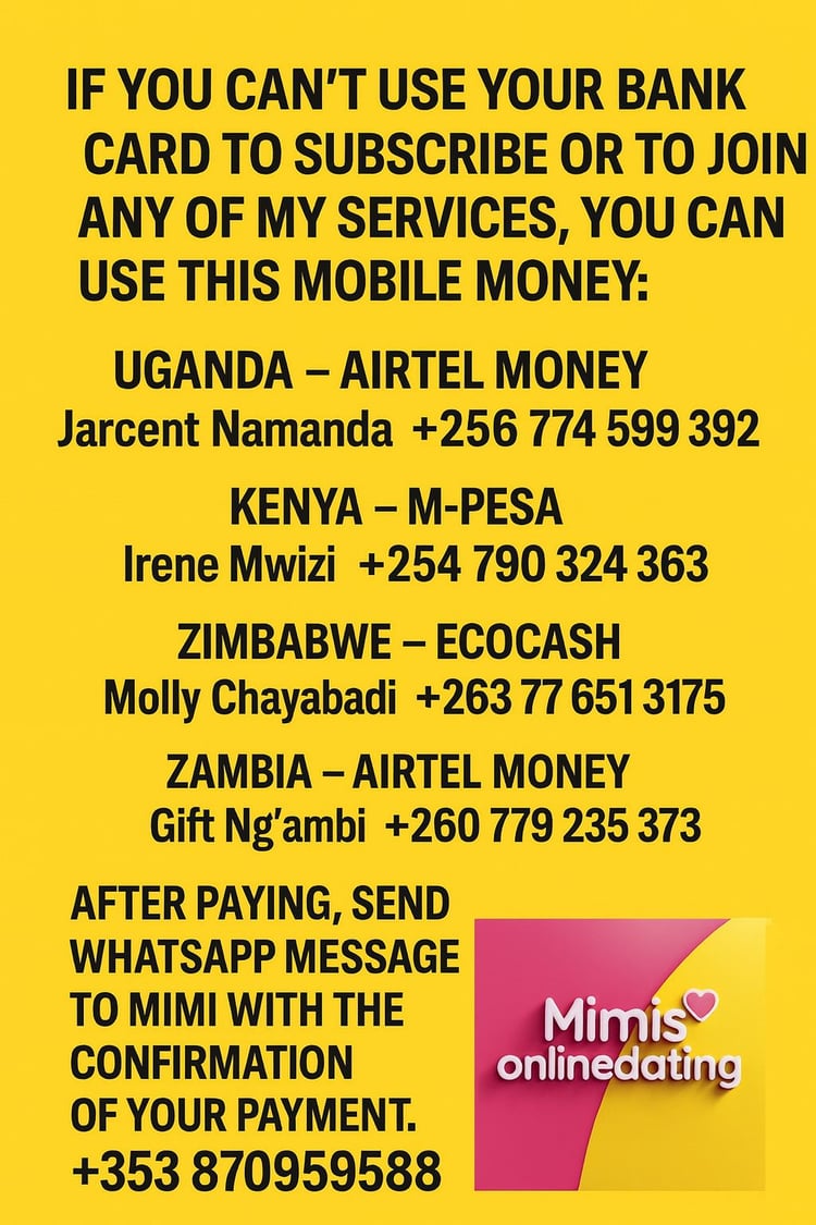Hi, I`m Memory -founder of MimisOnlineDating a growing global community with over 1.4million Facebook followers and900,000 K fans on TikTok