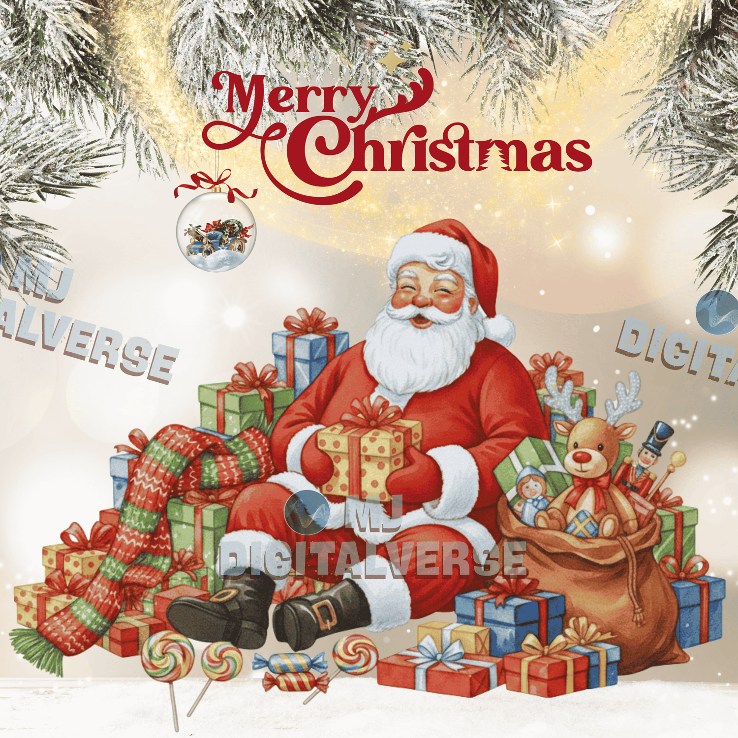 Retro Santa Christmas 5-Style Set | Watercolor Santa Full Decoration Clipart & Animation (GIF files) Digital Download (4086Γ—4086)