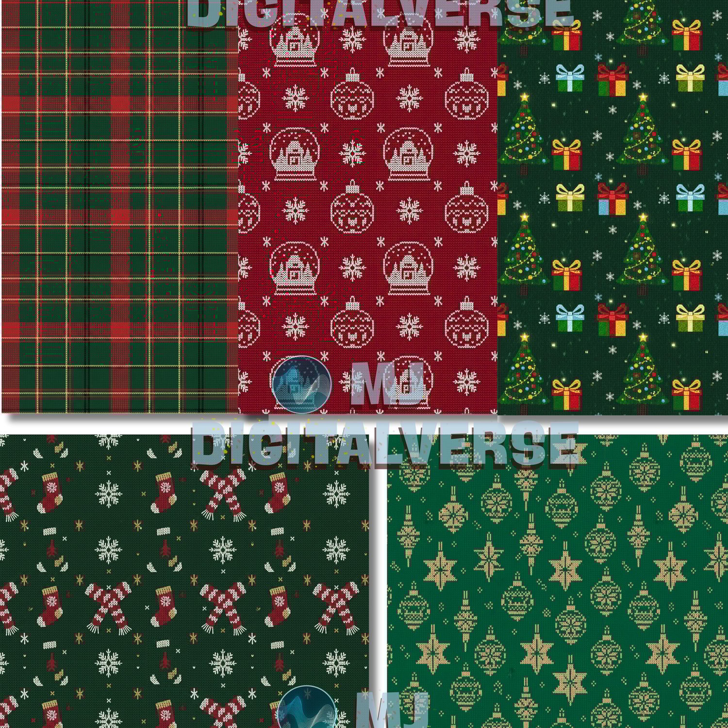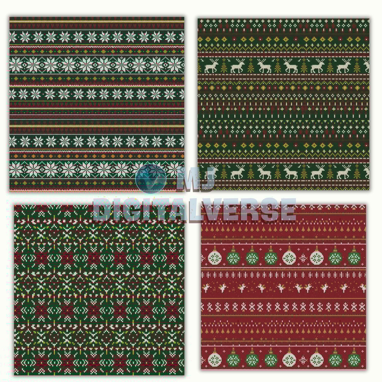 β˜ƒοΈ Christmas Knitting Seamless Pattern Bundle – 10 Festive Sweater-Style Digital Download (4096Γ—4096)