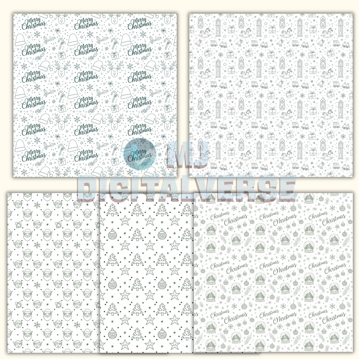 β˜ƒοΈ 10 Christmas Seamless Line Art Digital Patterns | Holiday Outline Drawing Pack | Scrapbooking, Wrapping Paper, Coloring activity and more