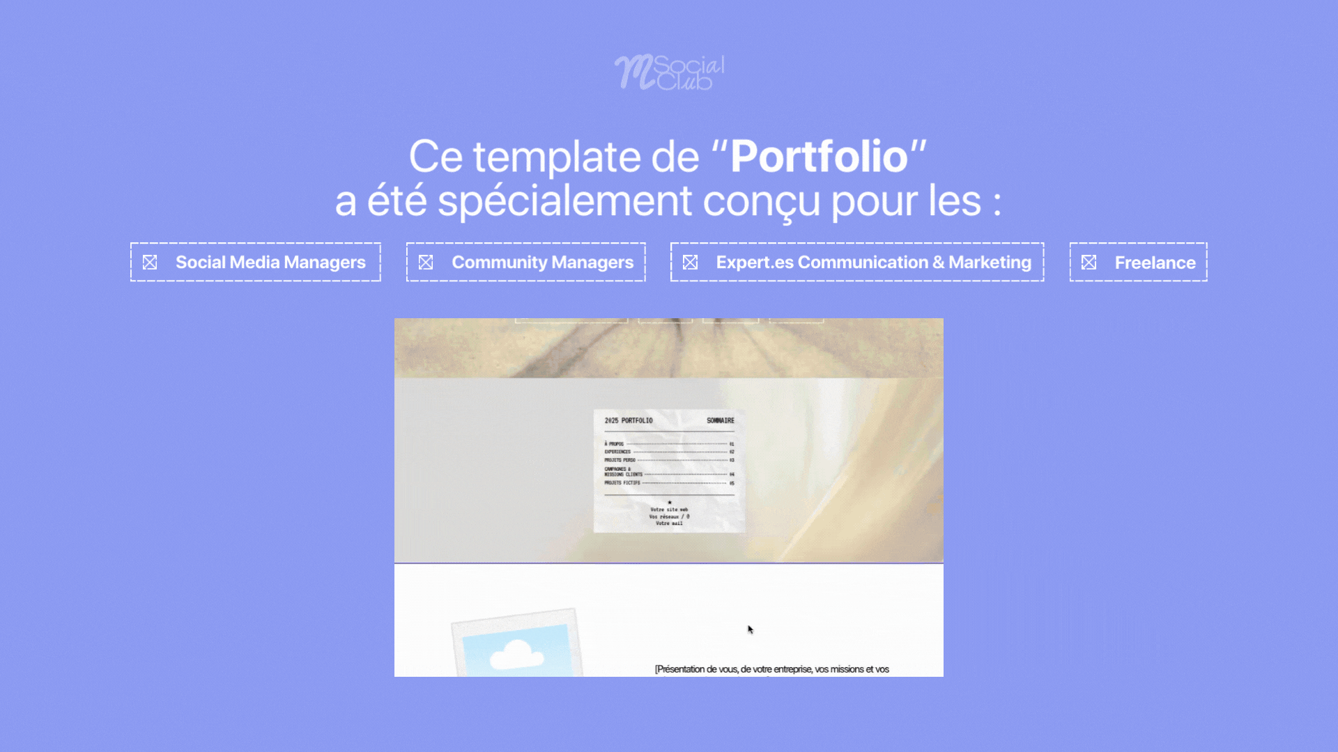 - Des textes pré-rédigés et des cadres d'images pour t'aider à ajouter facilement tes infos, sans perdre de temps à te demander quoi inclure