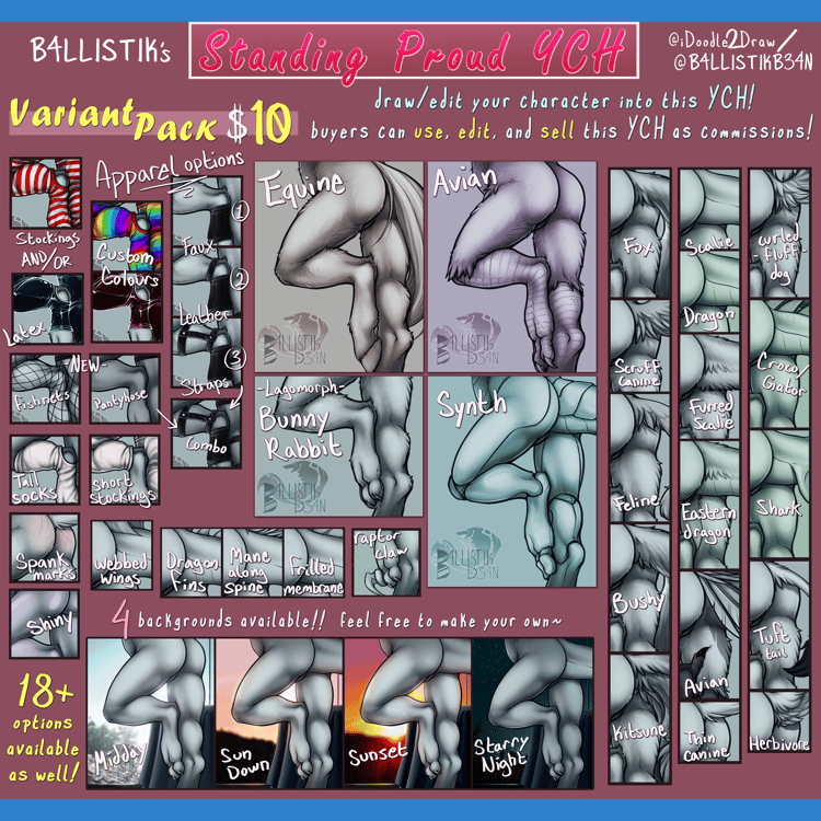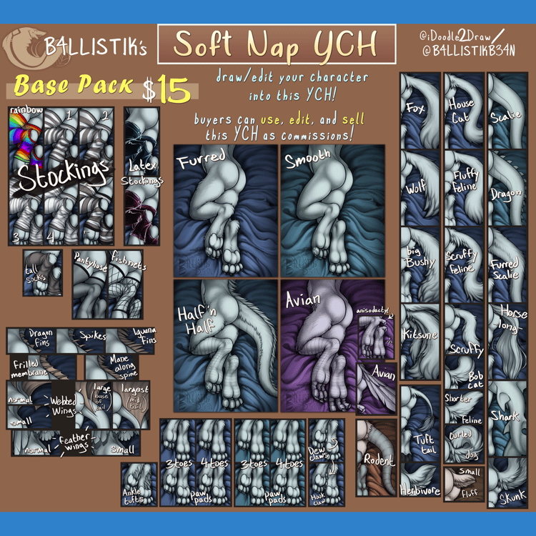 if you would like a bundle of specific YCH templates [ex: Layin' Cozy Base Pack + Variant Pack], feel free to request one!