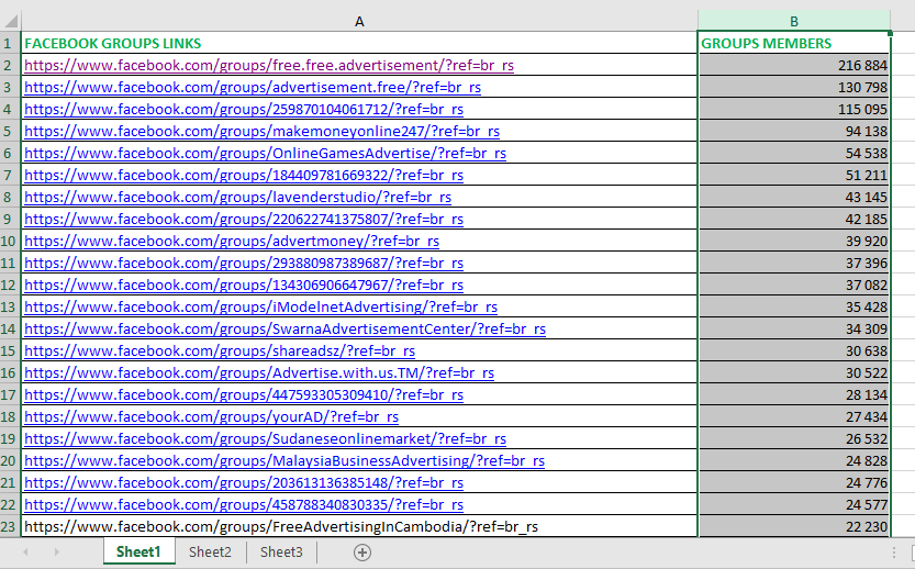 List of 1013 Facebook business groups.