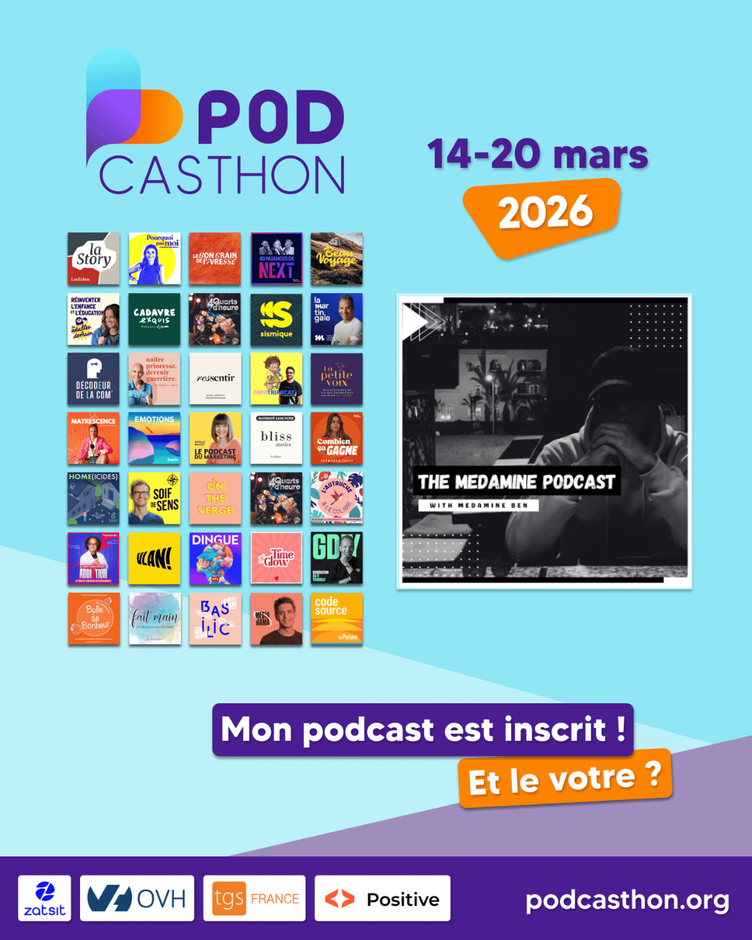 🎙️ The Medamine Podcast participe au Podcasthon 2026 Le 15 mars 2026 à 7h00, un nouvel épisode de The Medamine Podcast sera publié dans le cadre de Podcasthon 2026, le plus grand événement caritatif du monde du podcast. Pour cet épisode spécial, nou...