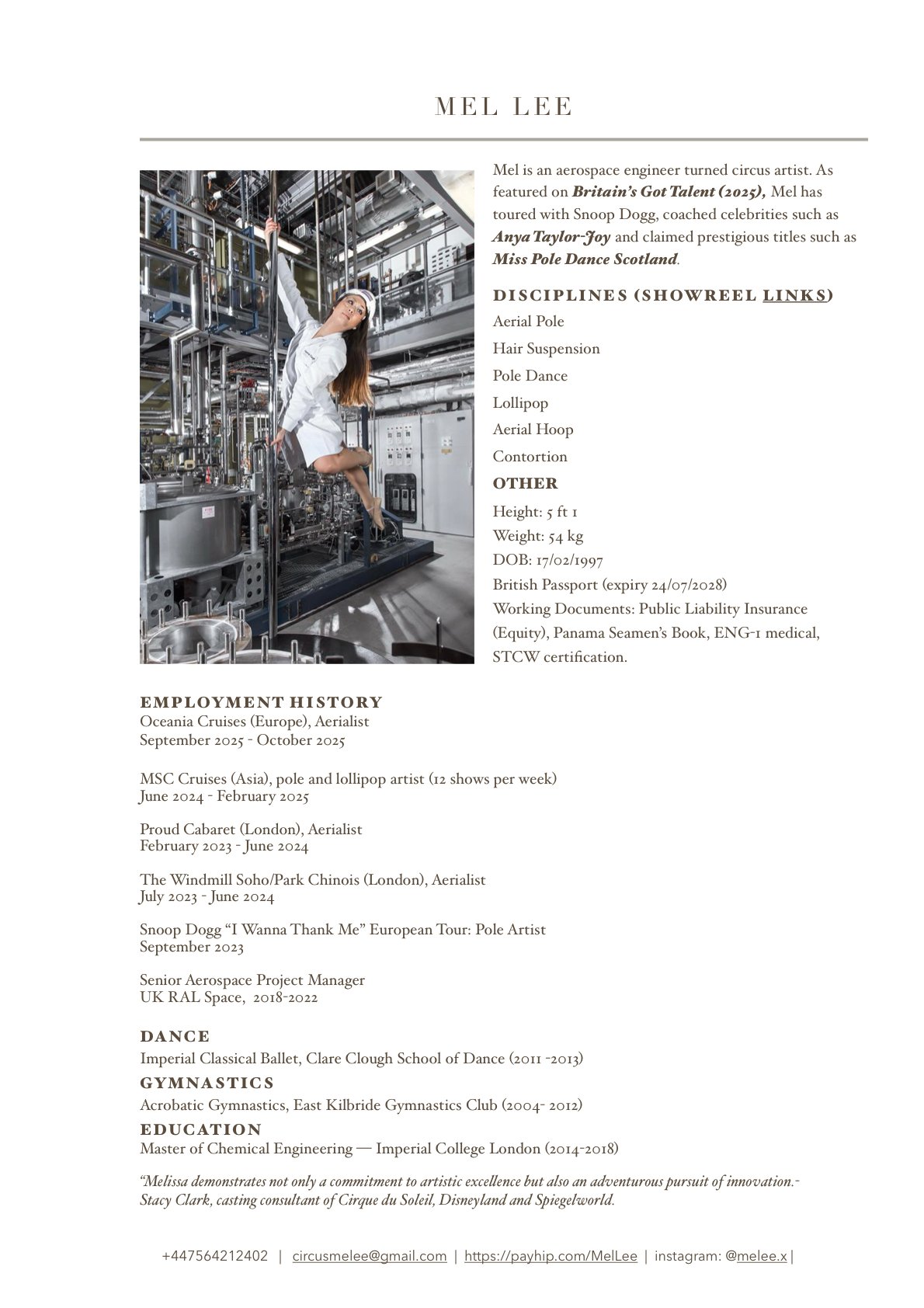 Hello! I’m Mel Lee - former aerospace engineer, now circus performer and coach.