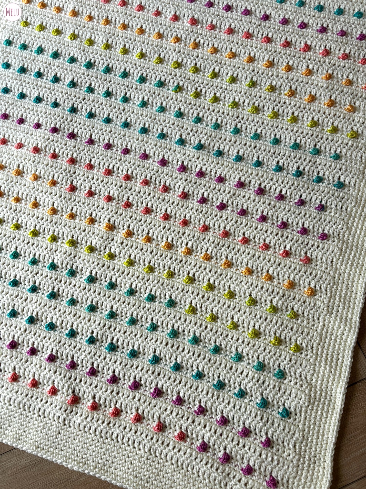 Dotty Bobble Blanket pattern by Melu Crochet Baby Afghan bobble stitch crochet comforter and bed or sofa throw for unisex/boy/girl or home