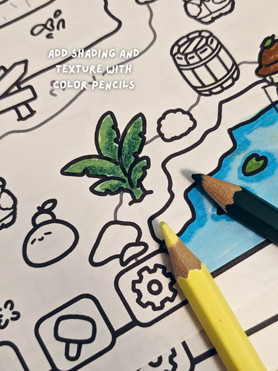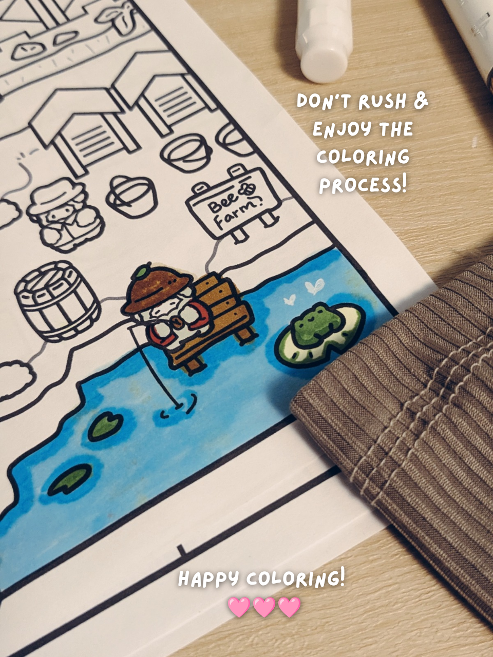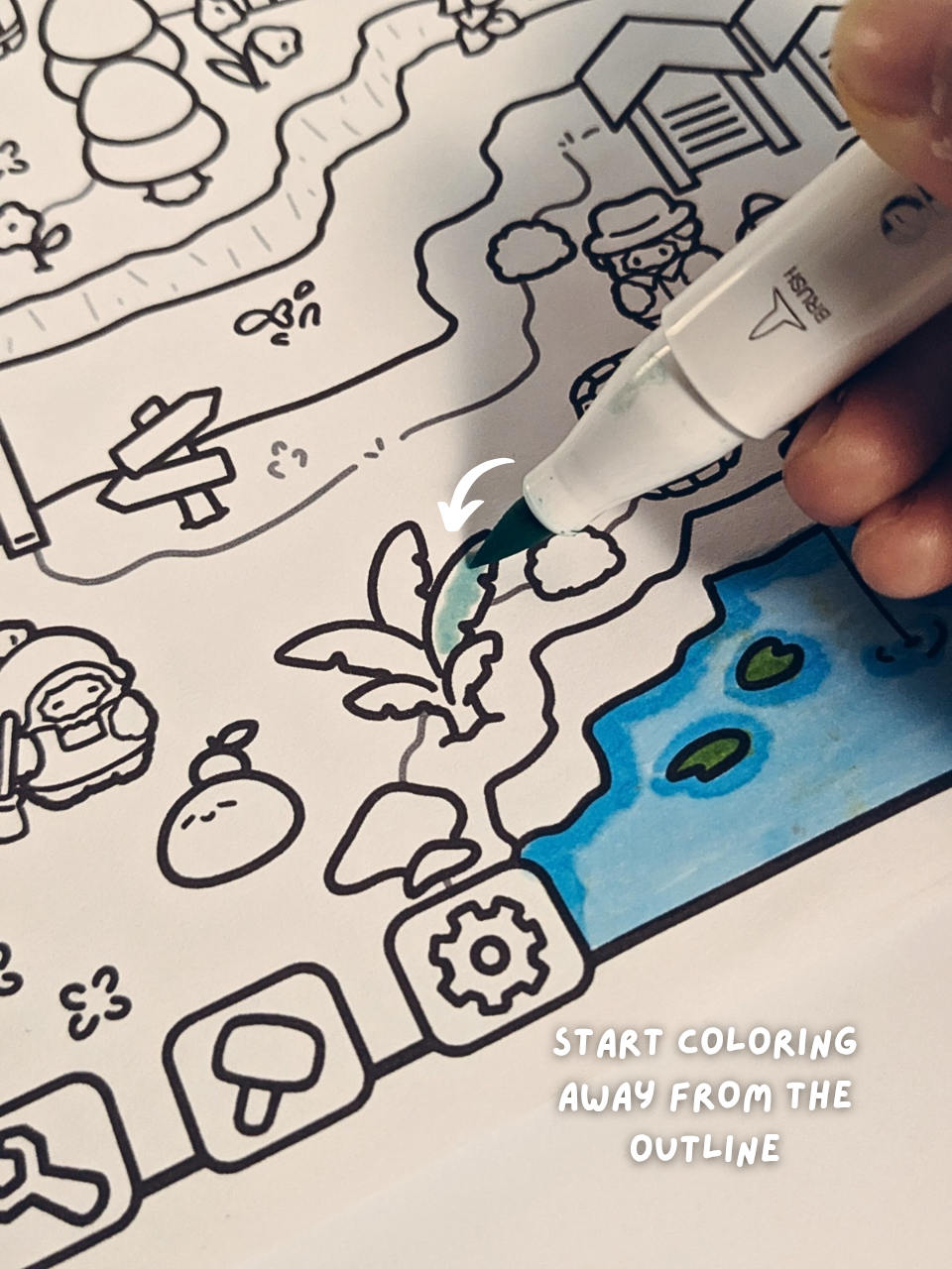 Special Dolly Minihouse - Town Build was designed to portray a 2D game concept which contains tiny elements in the scene. So, the coloring area may be limited and the use of alcohol markers may cause ink bleeding. In this page, we are listing some suggestions and tips to prevent this and attain enjoyable coloring moment.