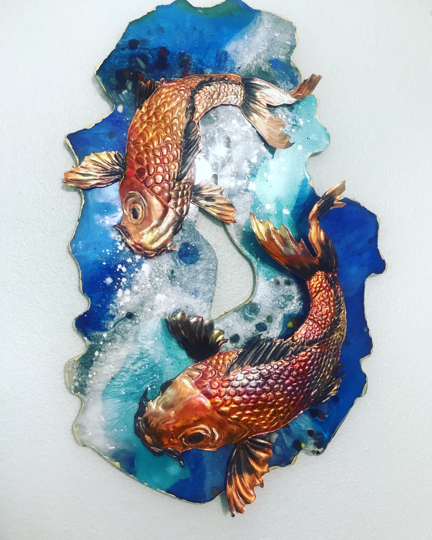 This rainbow trout was for a fisherman in Bozeman, Montana. I was so happy with how the coloring turned out. When flame painting, you have one chance. The sculpted copper can quickly get overheated, and then turn to a muddy color. This one worked out perfectly!!