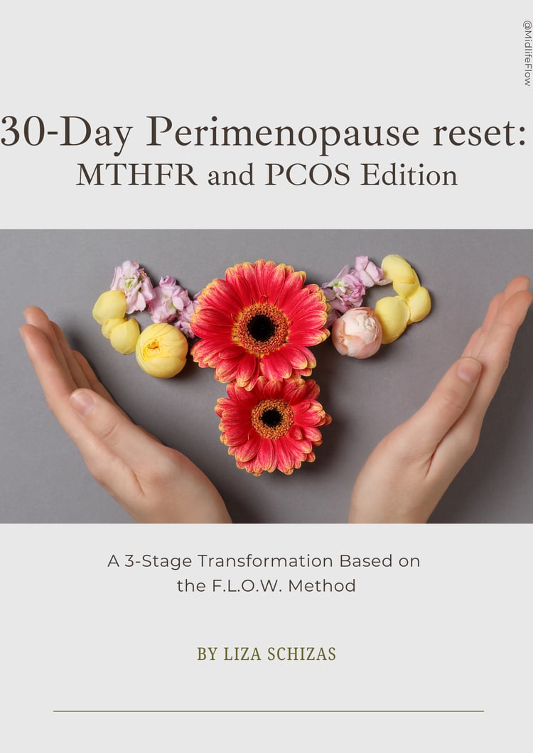 Hi, I’m Liza Schizas, founder of Midlife Flow. As a woman navigating perimenopause while balancing MTHFR and PCOS, I understand how overwhelming this phase of life can be. Through my own journey, I discovered the power of nutrition, lifestyle shifts, and holistic practices to restore balance and energy.