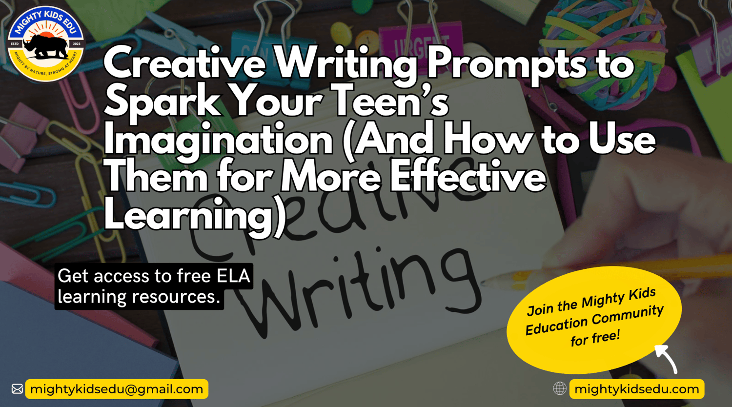 Creative writing is a powerful tool that helps teens express their unique voices while honing important skills. By incorporating creative writing prompts into your ELA curriculum, you’ll see your teen’s imagination soar — and their academic performance improve. Join our free community to learn more about what Mighty Kids Education offers.