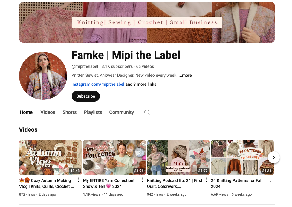 Want to see behind the scenes, sewing tutorials and follow along my knitting journey? Subscribe to my YouTube channel for knitting/sewing videos, pattern walkthroughs, and creative inspiration. Whether you’re a beginner sewist or a seasoned knitter, there’s something for everyone! Click the link below and hit the subscribe button to never miss a new video! 🧶💖