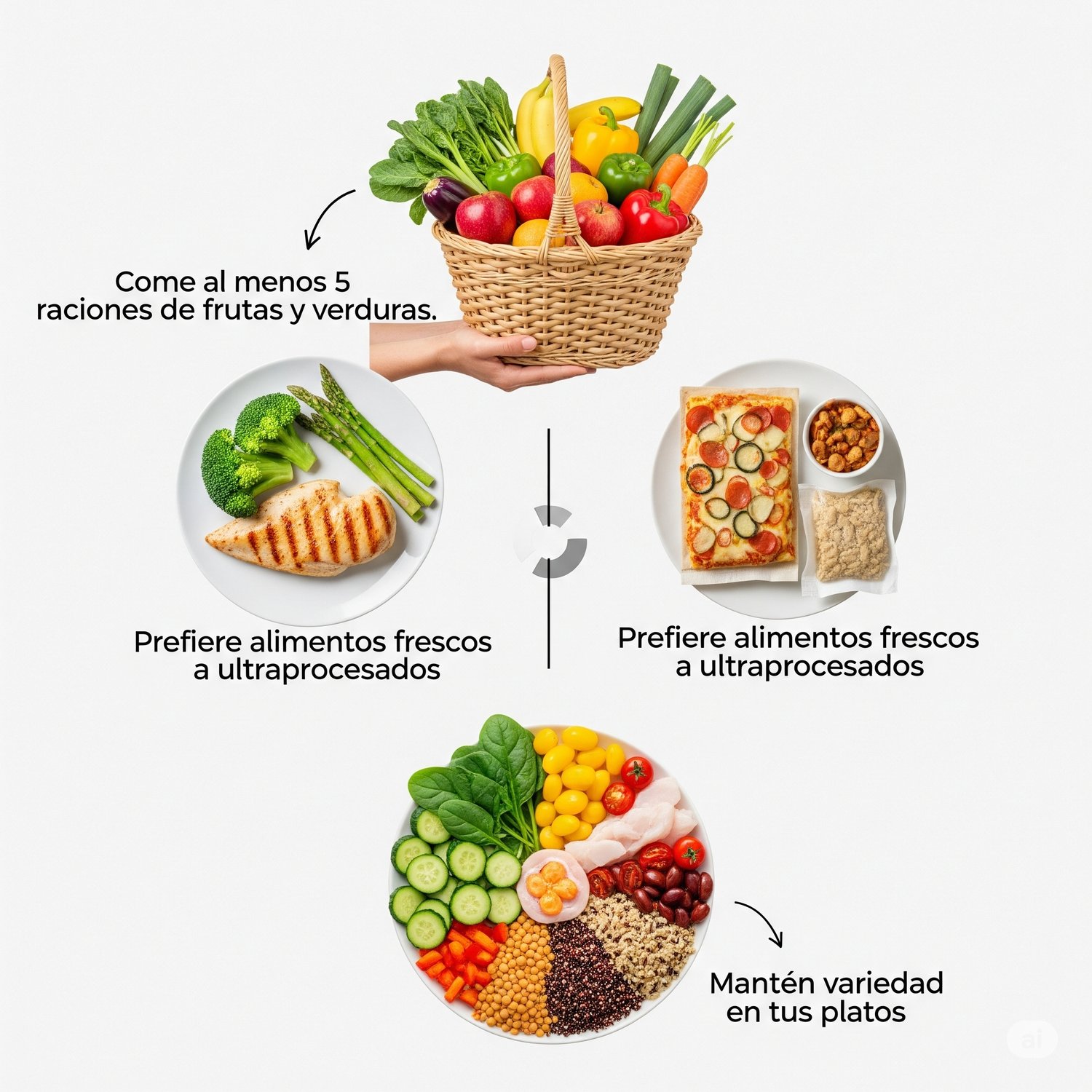 - Prefiere alimentos frescos a ultraprocesados.