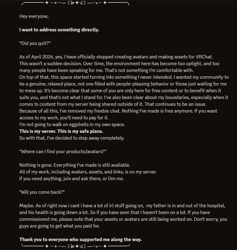 If you prefer not to have your work included, feel free to email me or join my server and submit a ticket.
