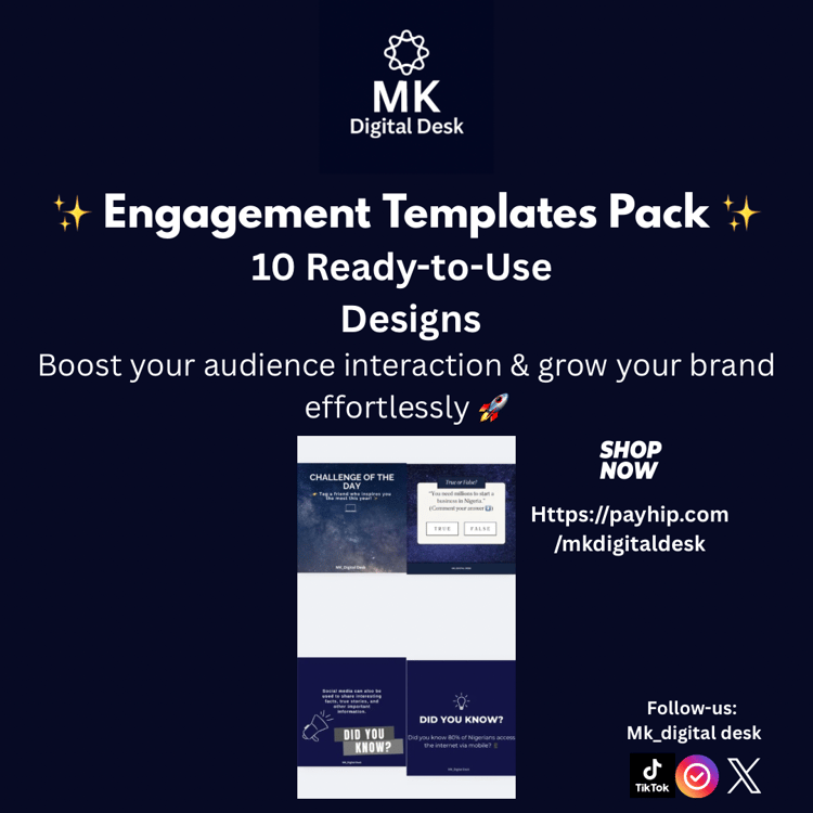✨ Ready-to-Use Templates → Promo packs, engagement kits, business info layouts.