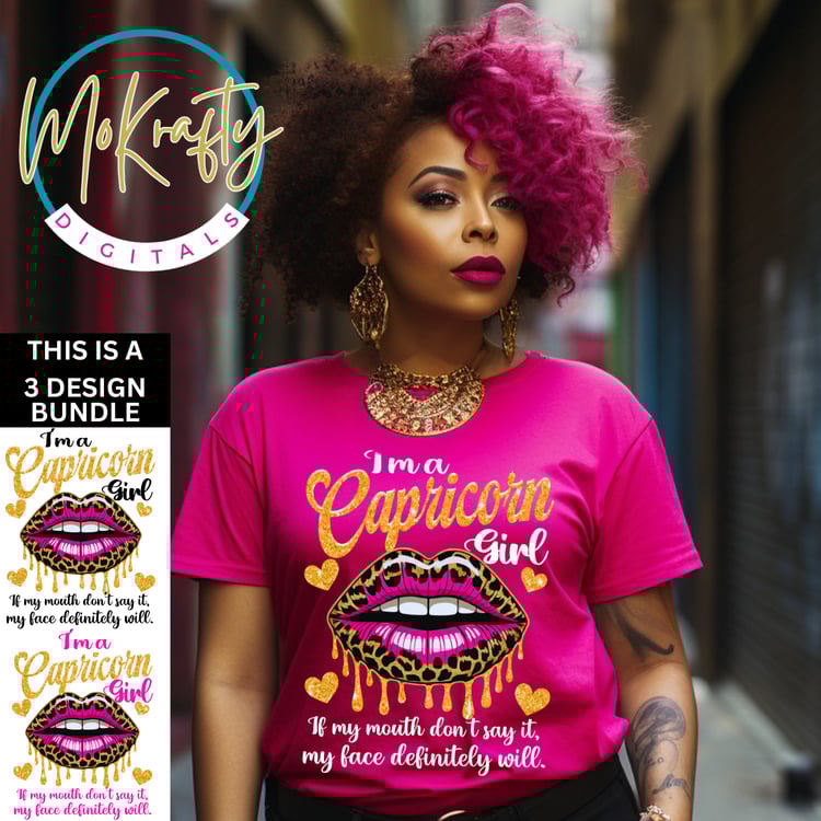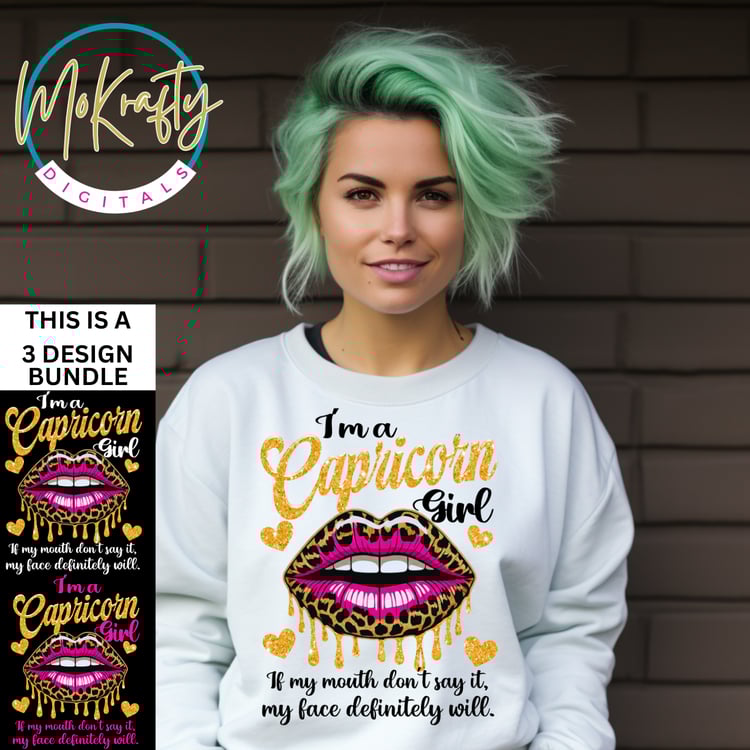 Capricorn Girl PNG Bundle – Zodiac Glam Lips Design (Set of 3)