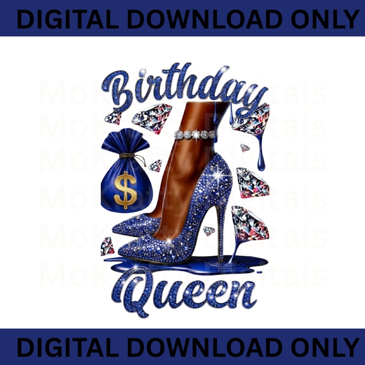 Birthday Queen PNG – Blue Glam Birthday Heels Design