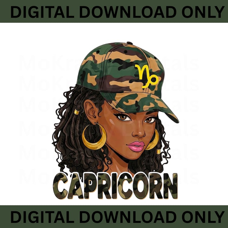 Capricorn Camo Girl PNG – Zodiac Glam Birthday Design