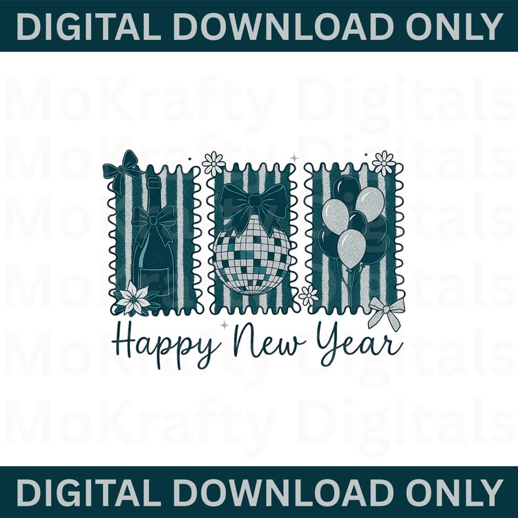 Happy New Year PNG – Teal & Silver Disco Ball Celebration Design