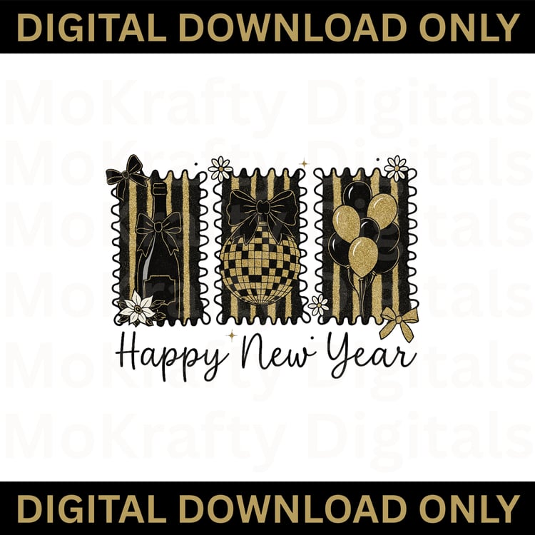 Happy New Year PNG – Purple & Teal Disco Ball Champagne Design