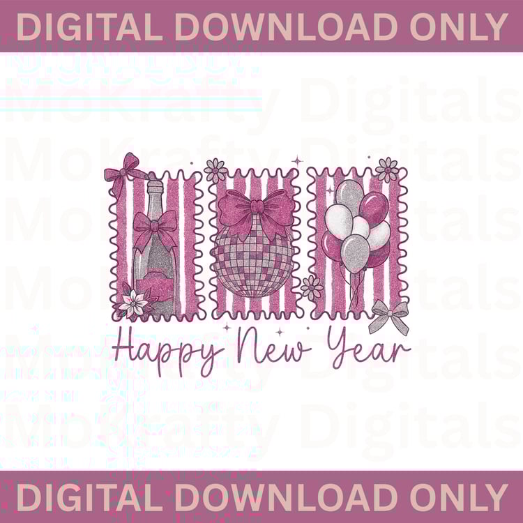 Happy New Year PNG – Pink & Silver Disco Ball Celebration Design