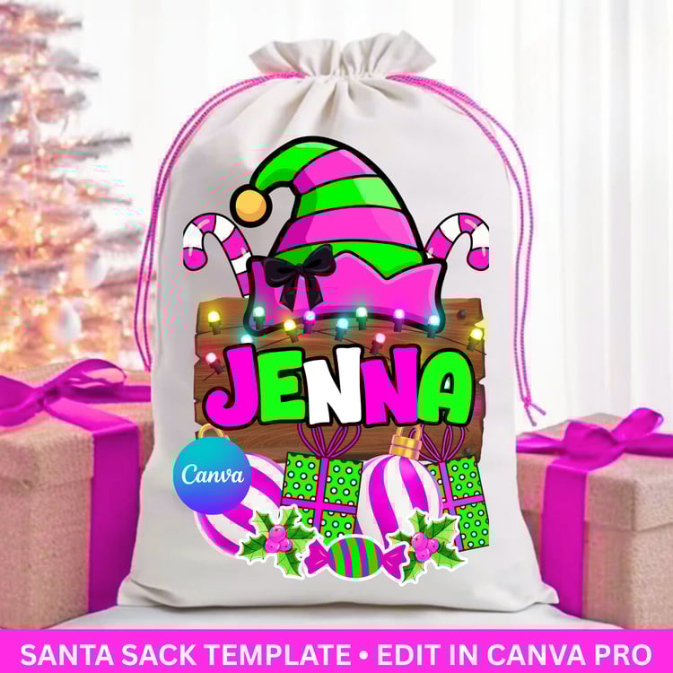 Santa Sack Template Bundle – 4 Editable Canva Designs + Mockups