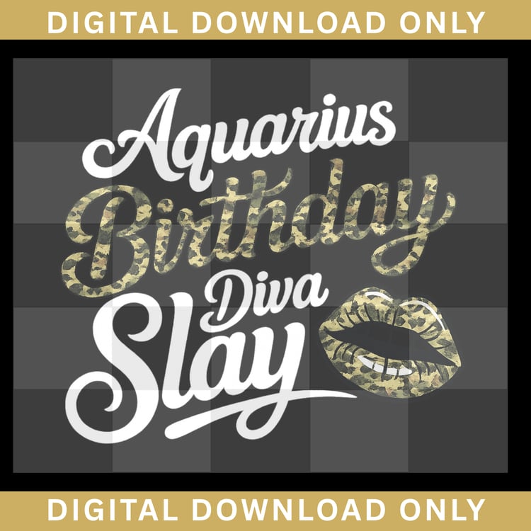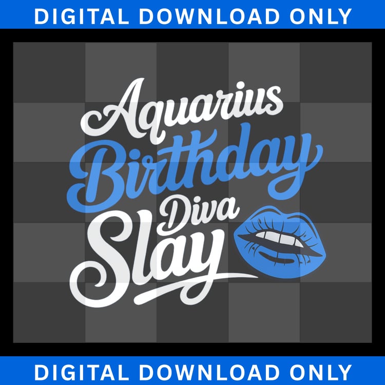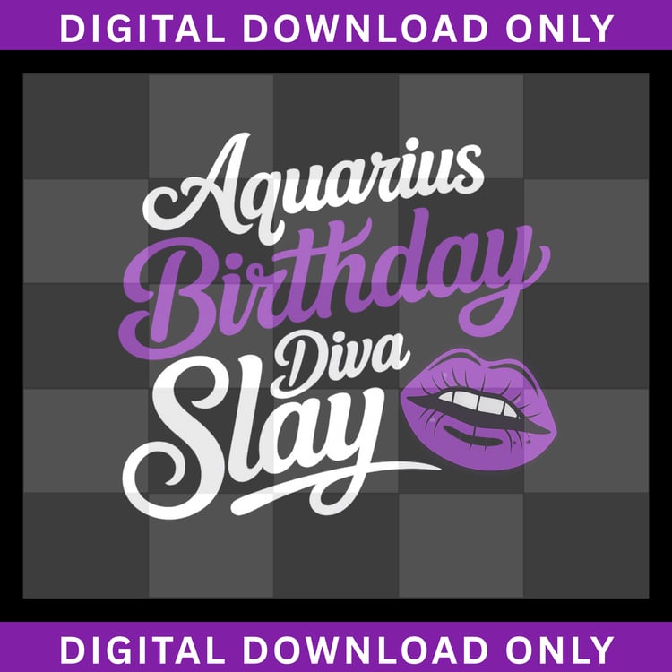 Aquarius Birthday Diva Slay PNG | Zodiac Sublimation & DTF Design