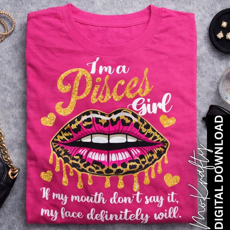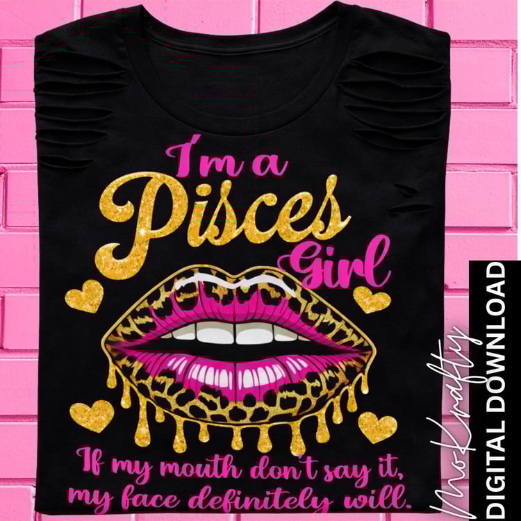 Pisces Girl PNG Bundle – Zodiac Glam Lips Shirt Design (3 Files)