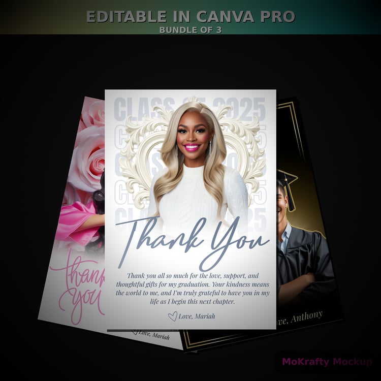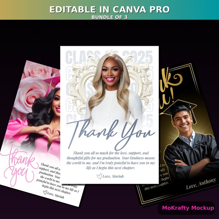 Editable Graduation Thank You Cards Bundle (3 Canva Pro Templates)