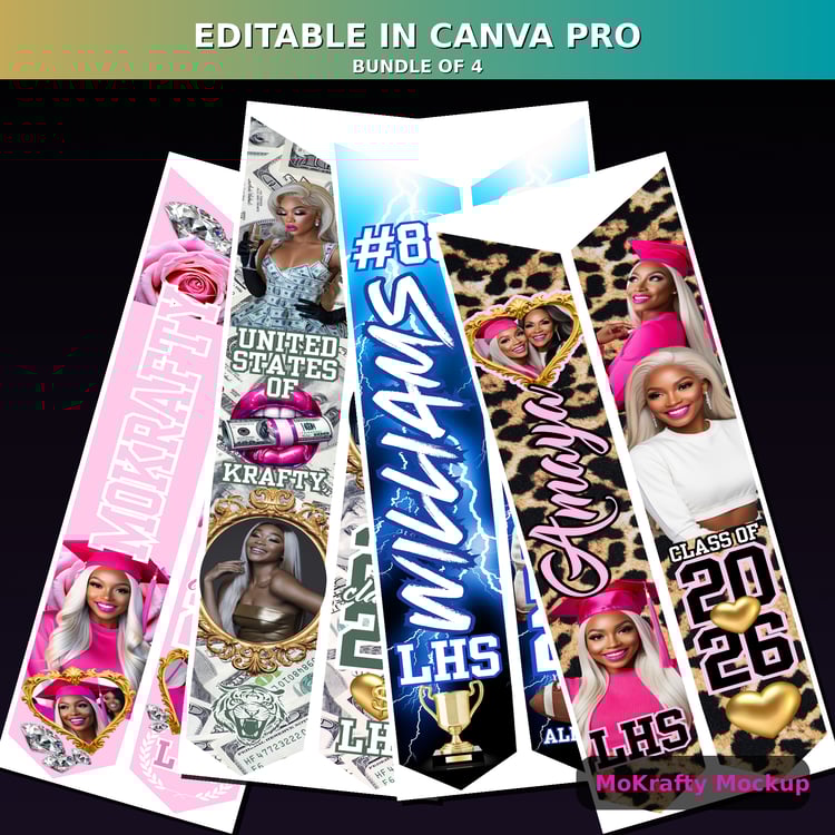 Editable Graduation Stole Banner Bundle (4 Canva Pro Templates)