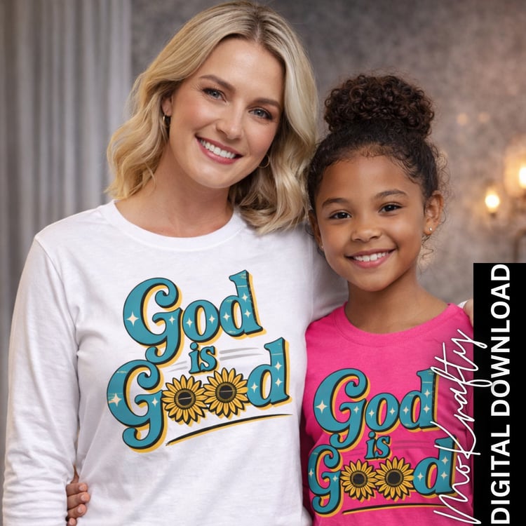 God Is Good Sunflower PNG + SVG Bundle | Retro Christian Design