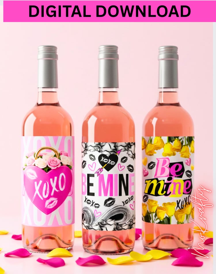 Valentine Wine Bottle Label PNG Bundle – Be Mine & XOXO Wine Labels