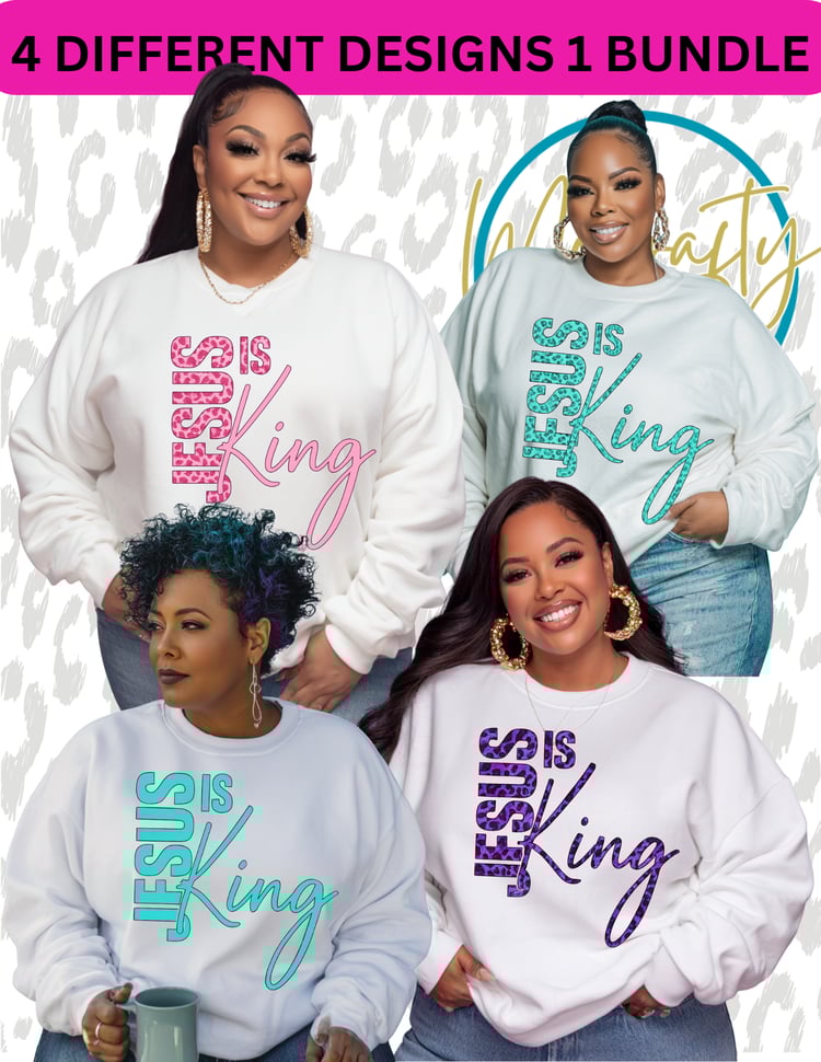 Jesus Is King PNG Bundle – 4 Design Set (Leopard & Turquoise)