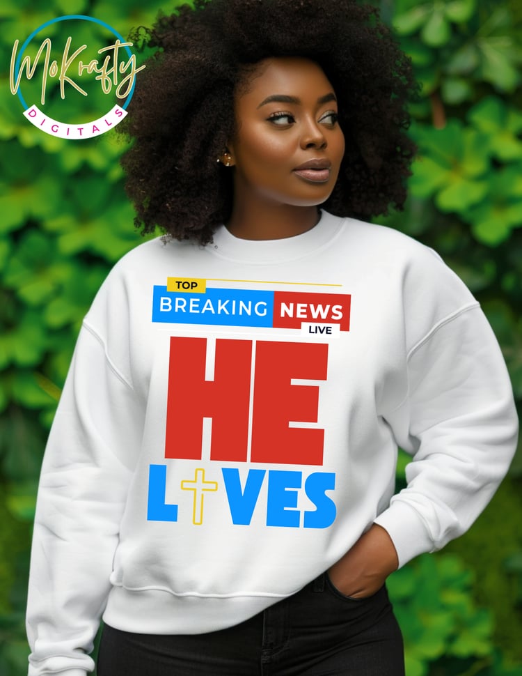 Breaking News: HE LIVES PNG – Christian Easter Faith Design