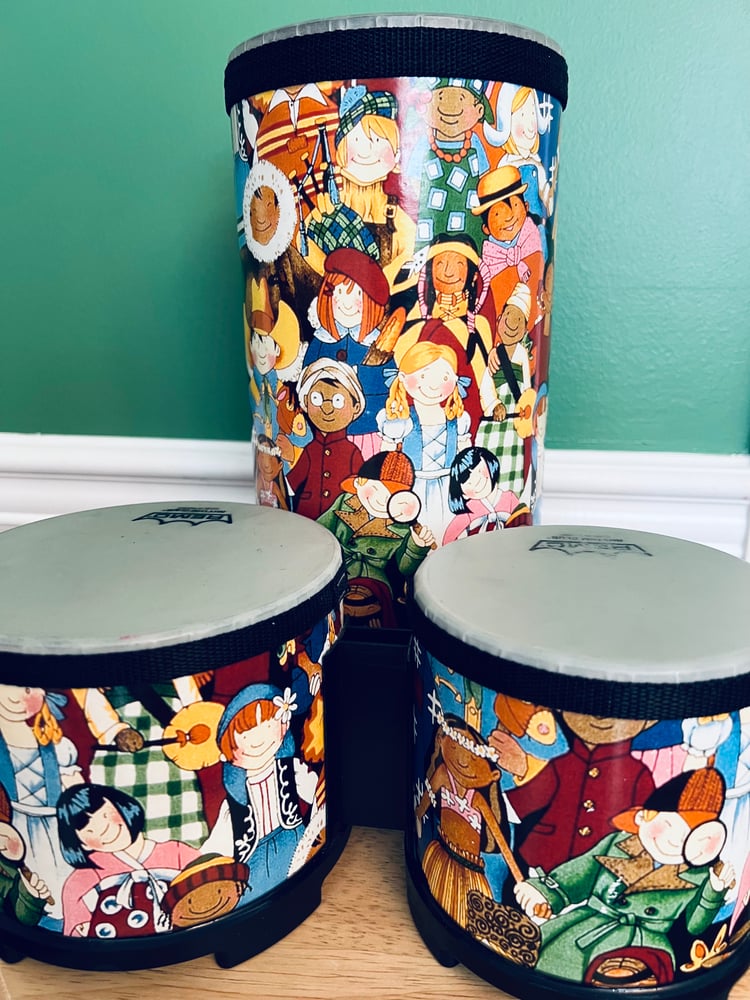Drums are a great option for practicing steady beat because we typically associate those with marching to a beat. But remember, a percussion instrument is anything you can tap, shake, or scrape, so use what you've got! Kids can even make steady beat sounds using their bodies as percussion: clap your hands, pat your knees, or march your feet to the beat.