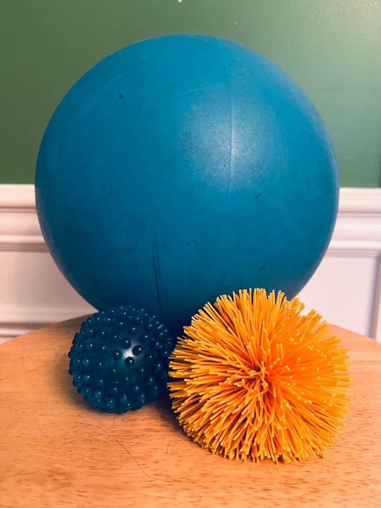 This is a great idea for identifying beat and working on coordination. Younger kids will benefit by using something like a beach ball or playground ball that's easier to control. Older kids (with better coordination) can be challenged by bouncing a tennis ball to the beat.