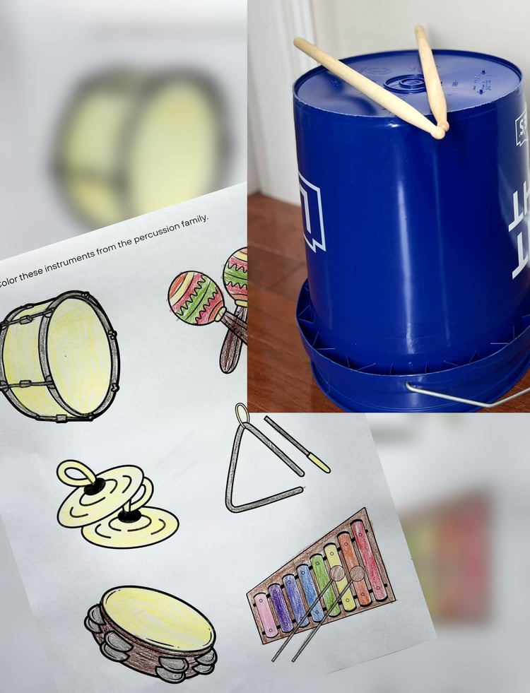 Get ready to go hunting around the house and see what materials you can find to make your own percussion instrument. Kids learn that a percussion instrument is anything you can hit, shake, or scrape.